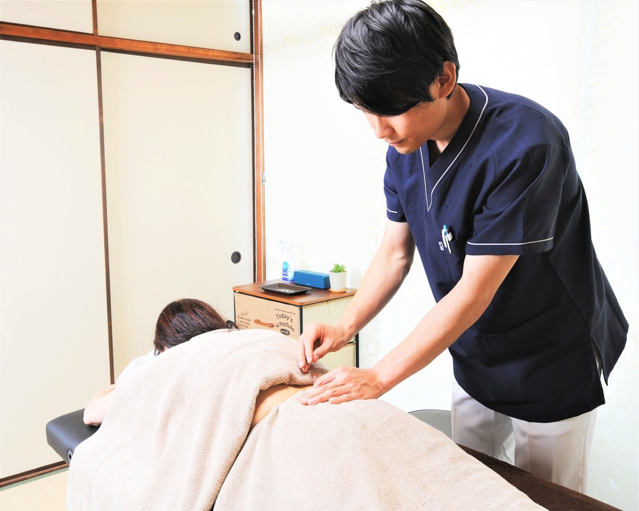 筋肉に針をする前に前揉というマッサージに似た手技療法をおこないます